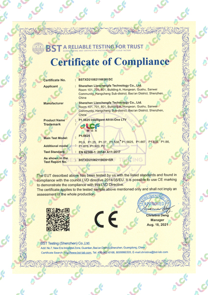 CE 证书(k1十年体育品牌一体机) P1.5625
